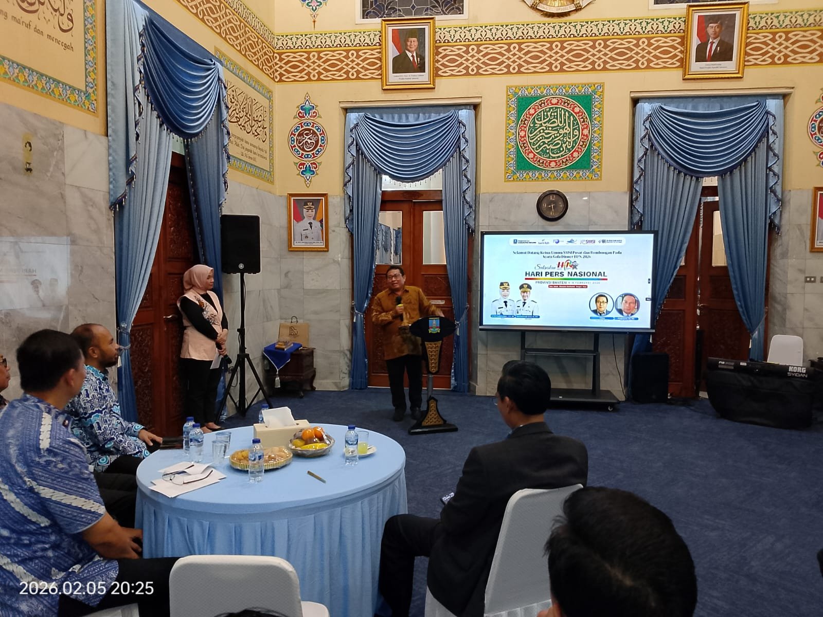 Ratusan pengurus Serikat Media Siber Indonesia (SMSI) Se-Indonesia peserta Hari Pers Nasional (HPN) 2026 dijamu makan malam (gala dinner) di Pendopo Kabupaten Serang, Jalan Veteran No.1, Serang, Provinsi Banten, Kamis (5/2/2026) malam.