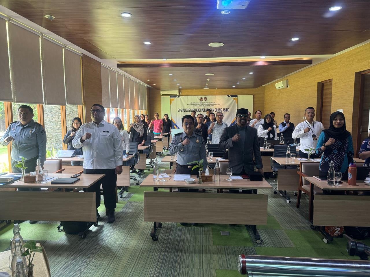 Dalam kegiatan tersebut, narasumber dari Direktorat Jenderal Imigrasi memaparkan fitur utama APOA, mulai dari pendaftaran akun, input data orang asing, hingga prosedur pelaporan kedatangan dan keberangkatan.