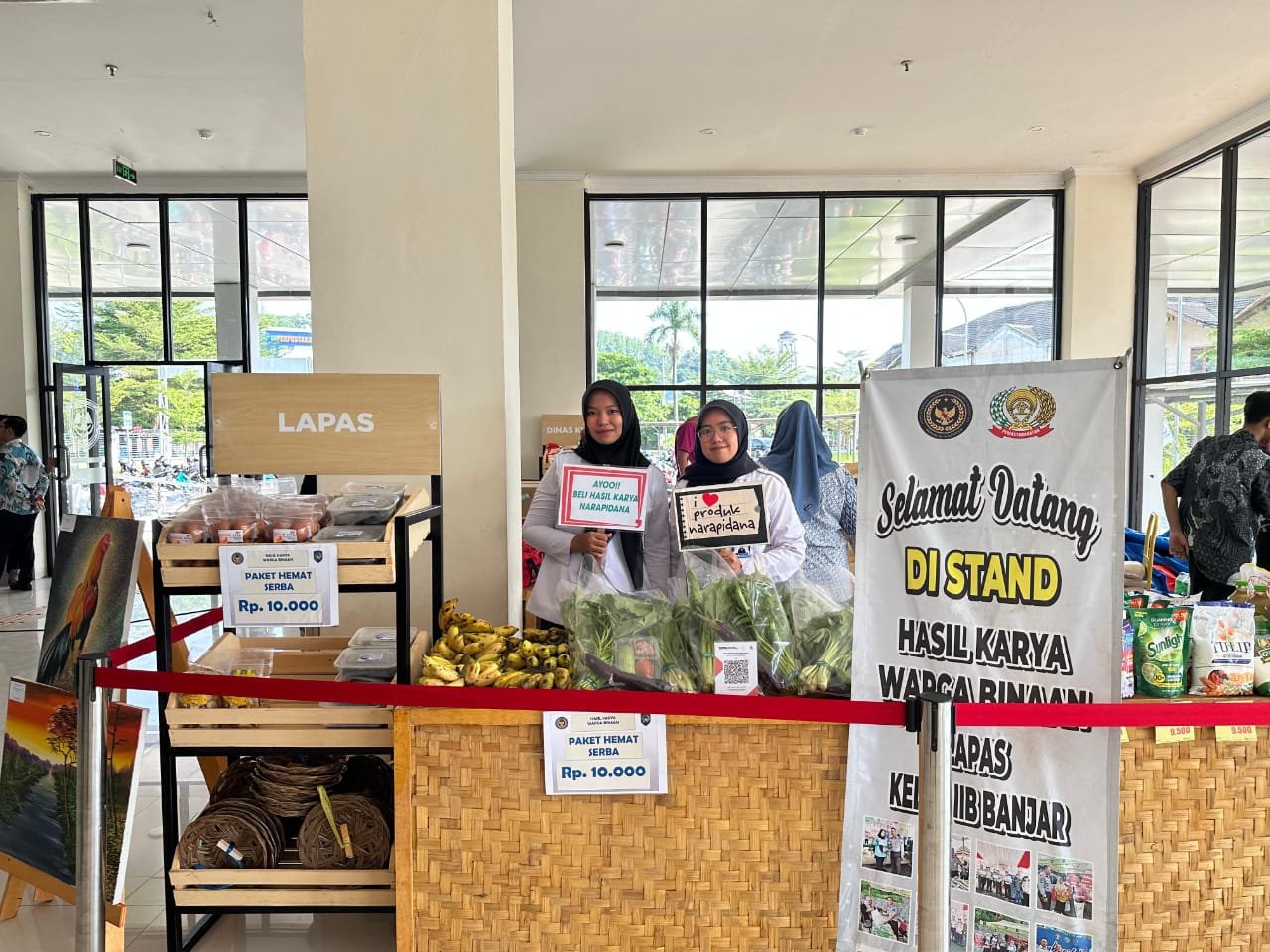 Adapun hasil karya yang turut dipamerkan antara lain lukisan, kerajinan piring lidi, telur ayam hasil peternakan, produk unggulan “Karpi” (Keripik Karya Napi), hasil pertanian berupa sayuran, serta budidaya lele. Seluruh produk tersebut merupakan bagian dari program pembinaan kemandirian dan kepribadian yang dilaksanakan secara berkelanjutan di Lapas Banjar.