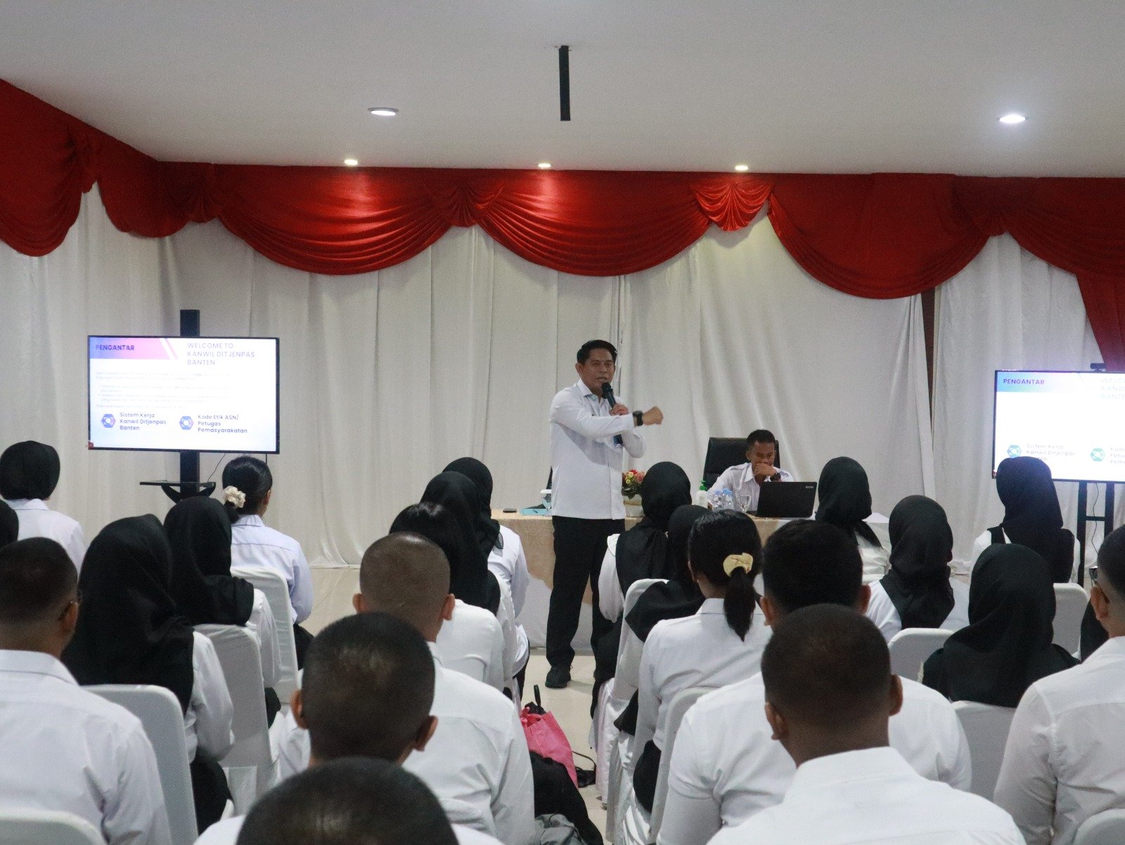 Kegiatan pembukaan seleksi CPNS di Lapas Cilegon dihadiri langsung oleh Kepala Kantor Wilayah Direktorat Jenderal Pemasyarakatan Banten, Bapak Muhammad Ali Syeh Banna, yang secara simbolis membuka proses seleksi dan memberikan pengarahan kepada para peserta. Kehadiran beliau menjadi bentuk dukungan langsung dari pimpinan wilayah terhadap regenerasi sumber daya manusia yang unggul dan berintegritas di lingkungan pemasyarakatan.