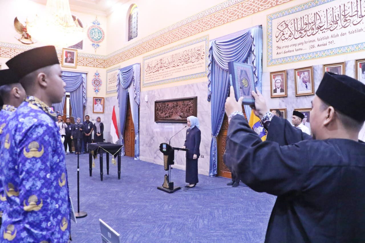 Bupati Serang Ratu Rachmatuzakiyah melantik 55 Aparatur Sipil Negara (ASN) Pegawai Pemerintah dengan Perjanjian Kerja (PPPK), Calon Pegawai Negeri Sipil (CPNS), dan Pegawai Negeri Sipil (PNS) di Pendopo Bupati pada Rabu, 15 Oktober 2025. Bupati Ratu Zakiyah berpesan khususnya PPPK agar bekerja dengan maksimal, dengan mengikuti aturan yang berlaku.