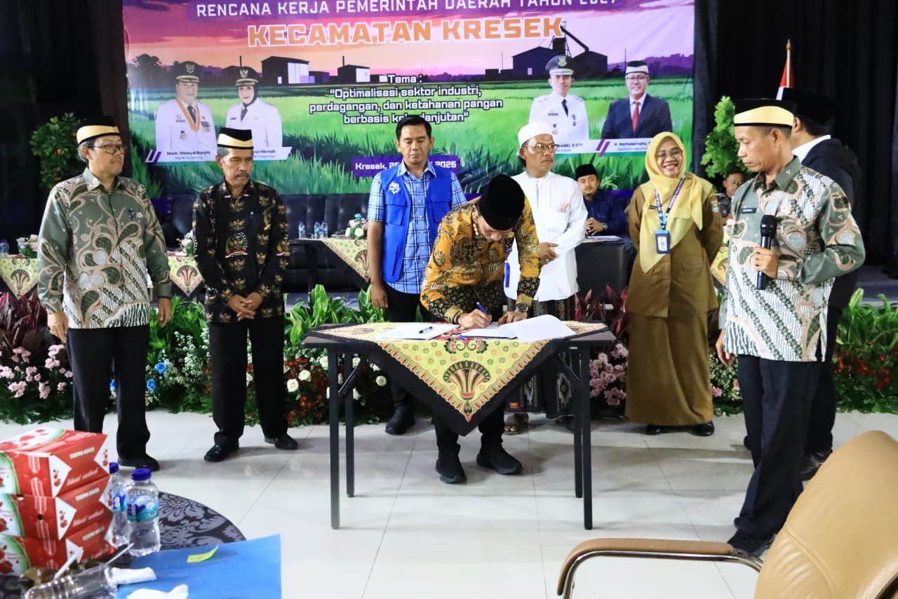 KORANBANTEN.COM – Kecamatan Kresek menggelar Musyawarah Perencanaan Pembangunan (Musrenbang) RKPD Tahun 2027 di Aula Kantor Kecamatan Kresek pada Kamis, (26/1/2026). Forum ini menjadi ruang penetapan arah pembangunan kecamatan dengan tema optimalisasi sektor industri, perdagangan, dan ketahanan pangan berkelanjutan.