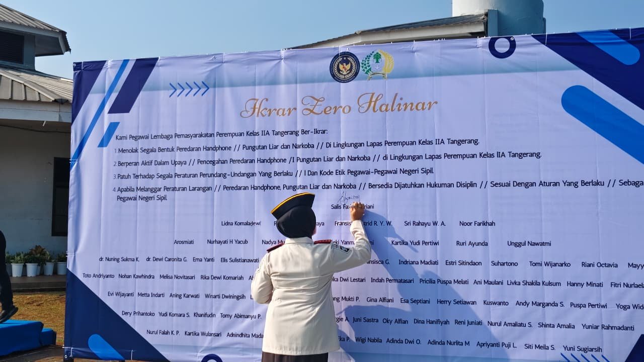 Tangerang – Dalam rangka memperkuat komitmen pemberantasan peredaran handphone ilegal, pungutan liar, dan narkoba di lingkungan pemasyarakatan, Lembaga Pemasyarakatan (Lapas) Perempuan Kelas IIA Tangerang melaksanakan kegiatan Ikrar Zero Halinar pada Senin, 20 April 2026. Kegiatan yang dilaksanakan di lapangan Lapas ini diikuti oleh seluruh pegawai dengan penuh khidmat.