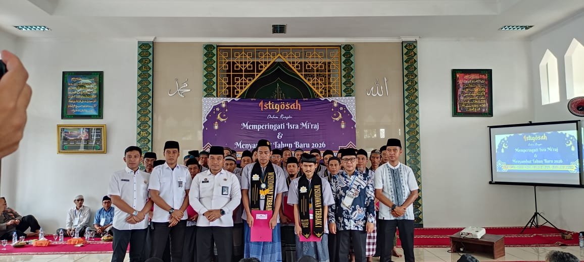 KORANBANTEN.COM – Menutup akhir Tahun 2025, Lembaga Pemasyarakatan Banjar melaksanakan kegiatan keagamaan berupa peringatan Isra’ Mi’raj Nabi Muhammad SAW yang dirangkaikan dengan istigosah, doa bersama menyambut Tahun Baru 2026, serta Wisuda Santri Pondok Pesantren Ruhhul Qudsi Lapas Banjar. Kegiatan tersebut dilaksanakan pada Rabu (31/12) bertempat di Masjid Baiturrahman Al-Munibin Lapas Banjar.
