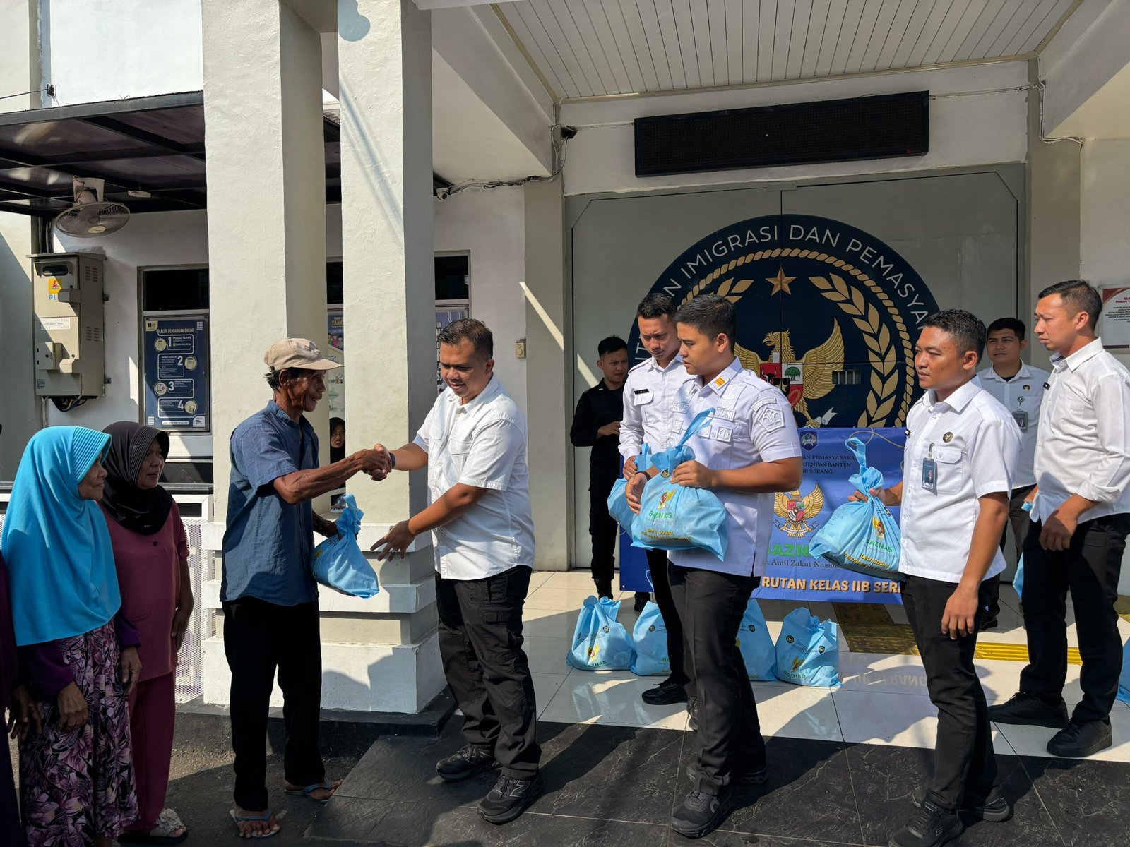 Kegiatan ini dipimpin langsung oleh Kepala Rutan Kelas IIB Serang, Rangga Permata, dan turut diikuti oleh jajaran pejabat struktural serta staf Rutan. Paket sembako yang dibagikan berisi kebutuhan pokok seperti beras, minyak goreng, gula pasir, dan mie instan.