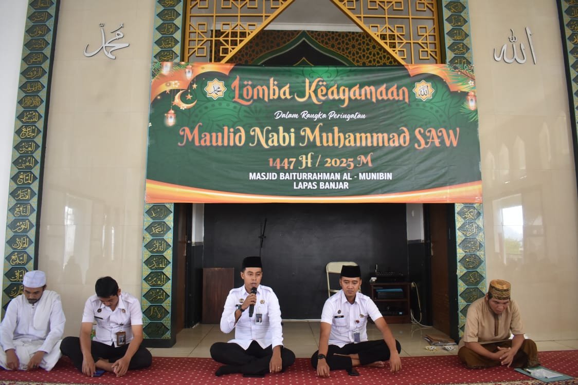 Lomba yang digelar meliputi lomba adzan, lomba sholawat, dan Lomba Pidato/Ceramah, Lomba Hafalan Surat Pendek dan Lomba Cerdas Cermat, kegiatan ini sebagai wujud rasa syukur atas kelahiran Rasulullah SAW dan meningkatkan kecintaan kepada Rasulullah SAW melalui syiar keagamaan, serta peningkatan Program Pembinaan spiritual bagi Warga Binaan Lapas Banjar.